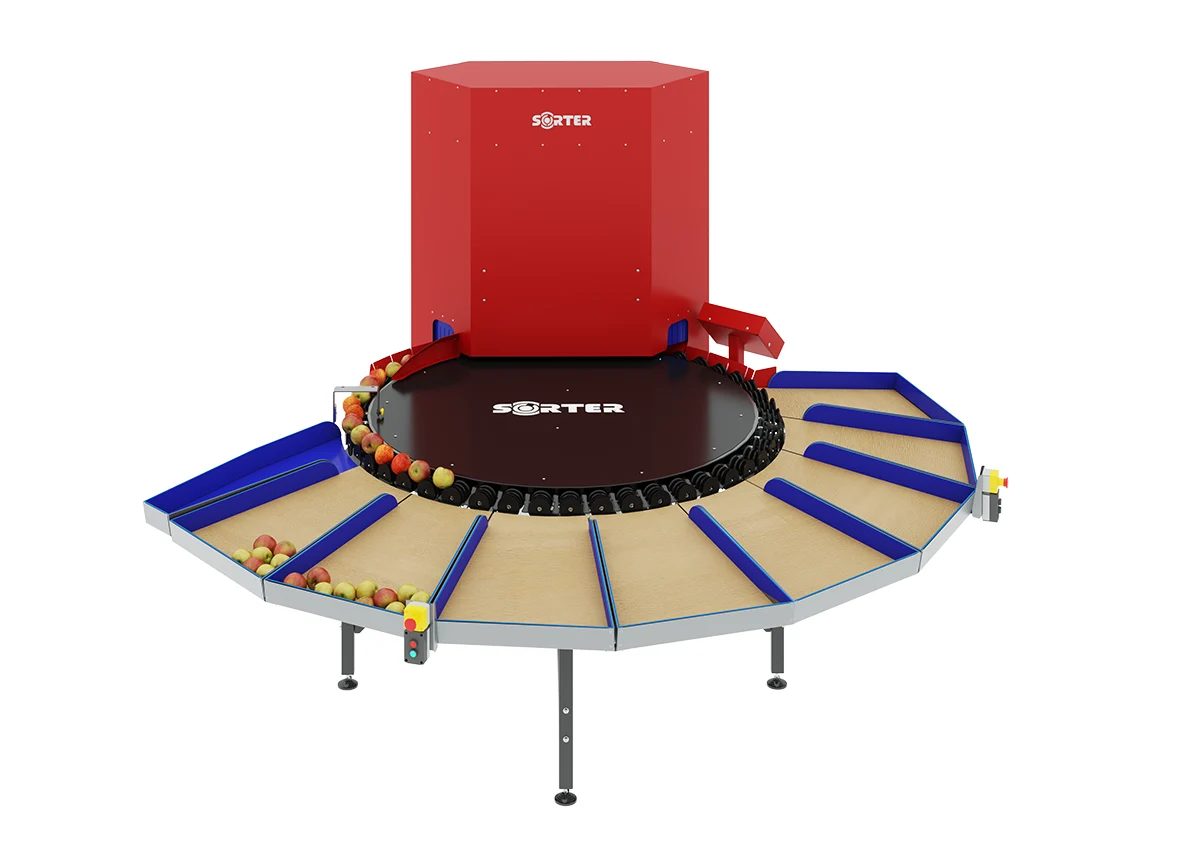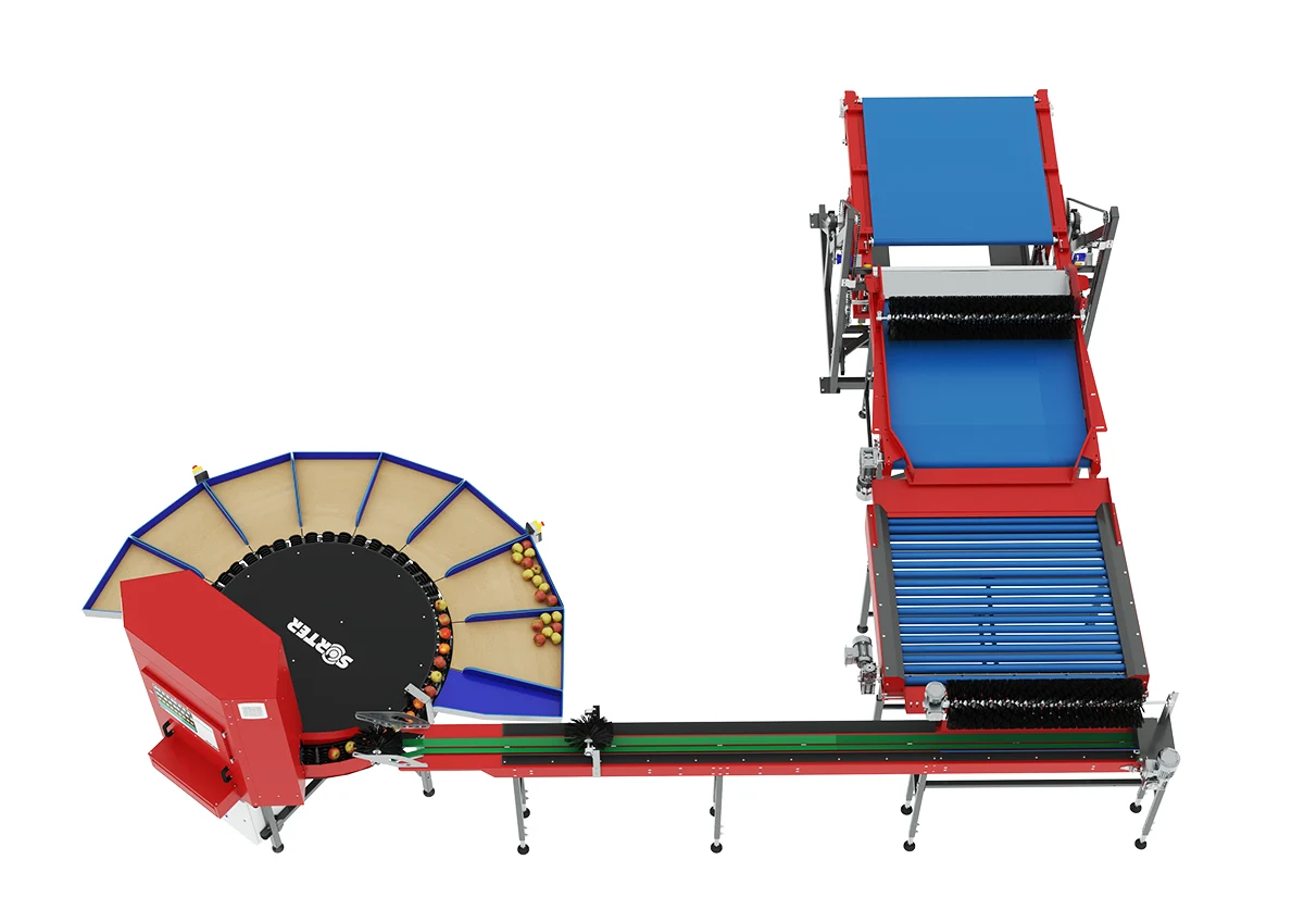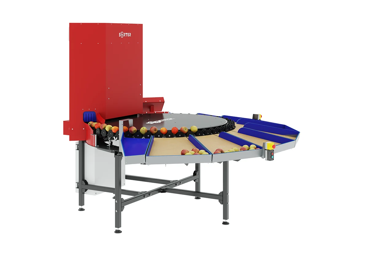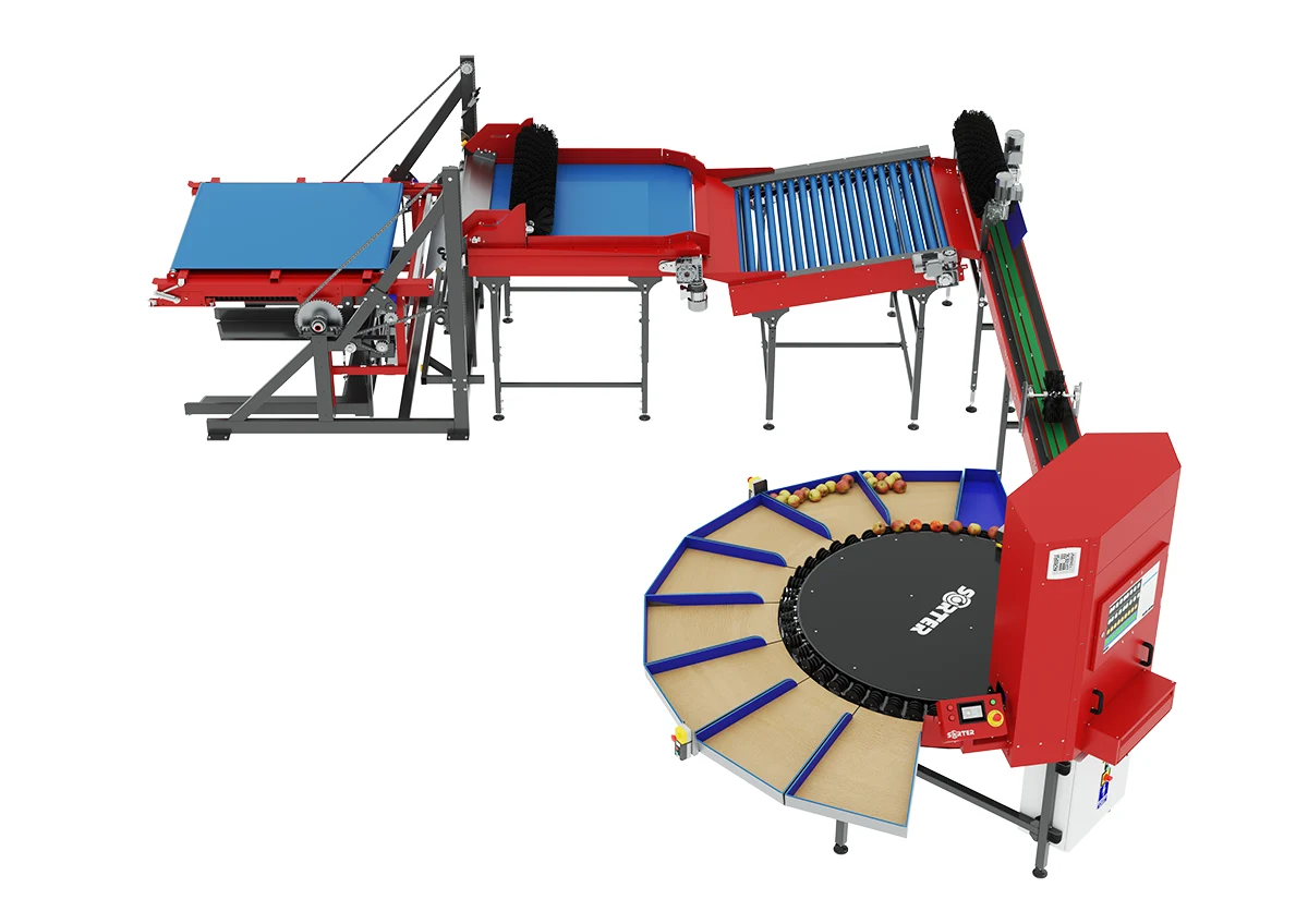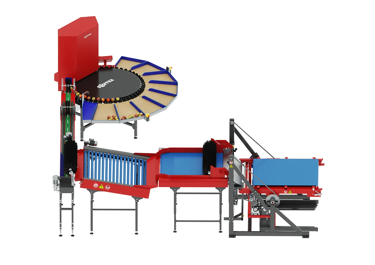 Les rouleaux en caoutchouc minimisent le risque d’endommager les fruits, et le système rotatif facilite l’analyse optique des produits, ce qui est particulièrement important dans le tri électronique des produits.